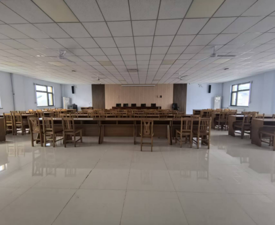 會議室——面積16m×12m=192㎡ 可容納150人同時開會,桌椅板凳、投影儀、音響齊全。