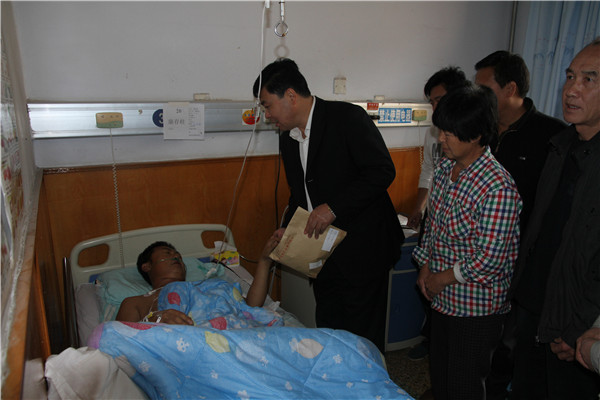 10月10日,一場溫暖的獻愛心活動正在總公司、三個分公司辦公室里悄悄進行。一分公司一位老職工、好車長、好同事正遭受著癌癥的折磨,用他微薄的力量與死亡抗爭。1999年2月康存柱同志到我公司工作,2008年6月被我公司聘用,為一分公司車長。妻子長期在家務農,大兒子剛上班,二兒子待業。2013年冬天,康存柱同志因患重病住院治療。近一年來,通過醫療保險手續報銷了部分治療費用。但是,不能通過醫保報銷的藥品、營養品等費用數額也非常大。本就經濟拮據的家庭瞬間被烏云籠罩,束手無策,整個家庭處在悲觀之中。長期以來,康存柱同志工作兢兢業業,任勞任怨,為公交事業做出了積極的貢獻。總公司得知消息后,鑒于于康存柱同志的實際困難,為充分體現組織溫暖,增強公司的凝聚力。總公司工會向全體職工發起愛心募捐倡議,倡議全體員工發揚“一方有難,八方支援”的民族傳統精神和“相互幫助、患難扶持”的時代新風進行捐款,為工友及時伸出援助之手。倡議發出后,充滿情與愛的衡水公交人紛紛解囊相助,大家踴躍捐款,截止到10月12日,共收到300多名員工的近2萬元捐款。10月15日,總經理張雙義同志帶領班子成員、部分職工代表來到醫院看望了康存柱同志及其家人,將愛心款交到了病人手中。張雙義同志與病人及家屬親切交談,詳細了解了病人的病情,鼓勵他們樹立信心,安心養病。同時,向病人及其家屬表示:在住院期間,如果遇到什么困難及時通知總公司,總公司永遠是公交員工的靠山。另外,還特意安排相關工作人員協助病人家屬辦理相關的醫療保險報銷手續,想盡一切辦法幫助病人家屬減少負擔。廣大公交人的捐款及時解決了工友的燃眉之急,使病人及家屬體會到了組織的溫暖。衡水公交人用赤城的愛心幫助工友化解危機、用互助的溫暖激勵工友戰勝困難的義舉,充分展現了衡水公交人高尚情操,進一步詮釋了總公司“人文公交”的企業文化內涵。