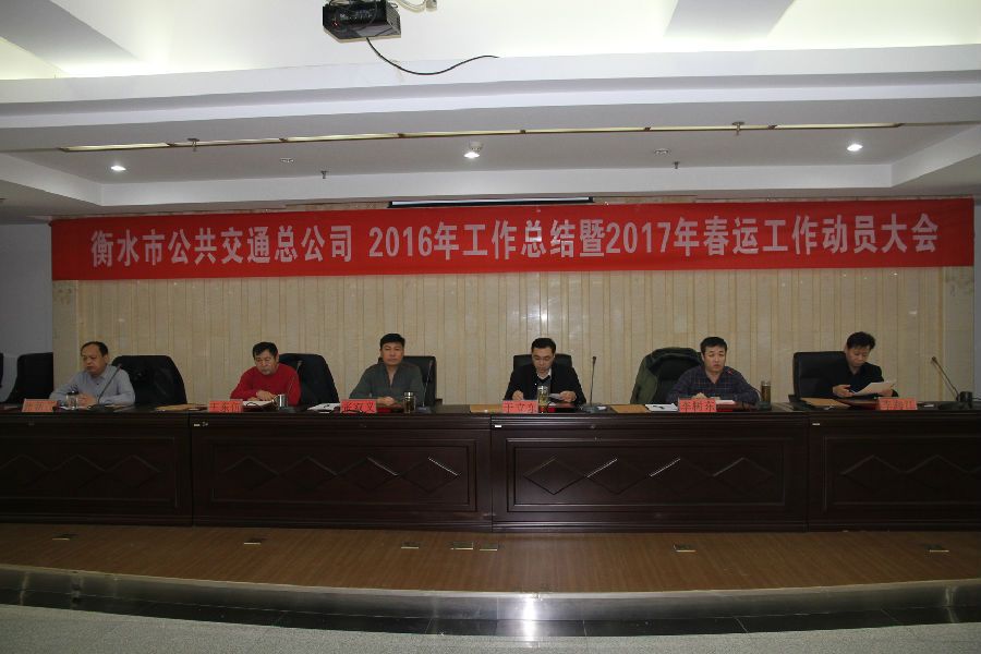 隨后,總經(jīng)理張雙義同志作了2016年度總結(jié)和2017年工作計劃的報告。在講話中張總經(jīng)理全面總結(jié)了2016年的各項工作,表彰了先進、振奮了人心;科學籌劃了2017年的發(fā)展思路;尤其著重強調(diào)了2017年公交安全生產(chǎn)工作的重要性、必要性、嚴峻性、緊迫性。春運期間全體公交職工要進一步提高安全紅線意識,要求全體干部職工時刻繃緊安全生產(chǎn)弦,切實加強公交安保工作,團結(jié)一心順利完成2017年的春運安全生產(chǎn)工作。另外,張總經(jīng)理結(jié)合總公司內(nèi)部和外部,軟件和硬件等方面的問題對2017年的工作進行了安排和部署,將2017年確定為“公交發(fā)展創(chuàng)新年”。最后,張總經(jīng)理號召全體員工在新的一年里團結(jié)一致,凝心聚力,以“城市公交發(fā)展創(chuàng)新年”為契機,轉(zhuǎn)變觀念、銳意進取、奮力向前,全面拉開公交深化改革、跨越發(fā)展的序幕,勇創(chuàng)公交事業(yè)新的輝煌!書寫公交發(fā)展新的篇章。