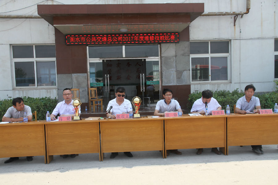 高超的維修技能是城市公交車輛正常運營的有力保障,為了進一步做好“園博會”期間城市公交的后勤保障工作,培養鍛煉一批理論水平高、操作技能強的維修崗位技術能手,造就一支高素質的維修隊伍,保證廣大市民和八方來客能夠安全、快捷、順暢出行,市公交總公司以迎接省首屆園博會為契機,于6月16日組織開展了“2017年度維修技能比賽”,旨在進一步提高城市公交維修隊伍整體水平和特殊情況的應急處置能力,竭盡全力為省園博會的順利召開“保駕護航”。比賽由副總經理李樹東同志主持,總經理張雙義同志出席并作總結發言。副總經理王東伍同志、副總經理李海江同志以及安凱客車、恒力制動器等客車配件廠家相關領導、技術人員以及各分公司管理人員、維修人員、休班車長等共計70余人參加了本次比賽。本次比賽共設置兩個比賽科目。一是城市公交車輛維修理論知識考核。二是城市公交車輛維修操作技能比賽。實際操作比賽共分兩個子項目,即現場故障排除和拆解、更換盤式制動器制動盤并進行前輪的維護保養。經過激烈的比賽,一分公司維修人員憑借著高超的維修技術和嫻熟的團隊配合,獲得了第一名的好成績。本次比賽,全體工作人員恪守職責,精心組織,密切配合,高效運轉,為比賽的順利進行提供了有力保障。全體參賽人員嚴格執行比賽各項比賽規程,文明參賽,團結拼搏,賽出了水平,賽出了友誼,展示了良好的精神風貌。