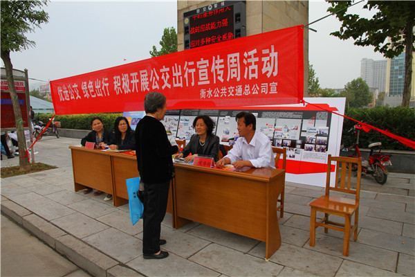 活動(dòng)期間,緊緊圍繞“優(yōu)選公交、綠色出行”這個(gè)主題,結(jié)合衡水實(shí)際情況,開(kāi)展了靈活多樣的群眾性主題宣傳活動(dòng)。一、利用車載媒體及LED廣告屏播放活動(dòng)公益廣告片和宣傳語(yǔ);在候車亭、首末站牌張貼公交出行宣傳海報(bào);在火車站中心樞紐站、各大公園廣場(chǎng)等人流密集的地方設(shè)置“公交出行周”宣傳展板;在站務(wù)室、售卡中心懸掛宣傳條幅等綜合利用各種宣傳方式大力宣傳城市公共交通對(duì)保障民生、推進(jìn)節(jié)能減排、減少空氣污染、緩解城市交通擁堵的重要意義,積極引導(dǎo)市民支持和參與城市公共交通發(fā)展。二、組織辦公室、政策研究室、售卡中心、人事勞資科、營(yíng)運(yùn)服務(wù)科等相關(guān)科室在火車站中心樞紐站、各大廣場(chǎng)、大型換乘站臺(tái)等公共場(chǎng)所設(shè)立公交咨詢臺(tái),宣傳公交并解答市民關(guān)于公交IC卡優(yōu)惠政策、公交司機(jī)招聘、線路運(yùn)營(yíng)、公交政策等方面的問(wèn)題。同時(shí),制作并發(fā)放了“征求意見(jiàn)卡”,以此來(lái)廣泛征集市民對(duì)公交線路優(yōu)化、服務(wù)時(shí)間、班次密度安排、車廂衛(wèi)生狀況、司乘人員服務(wù)態(tài)度等方面的意見(jiàn)和建議,為提升公交服務(wù)質(zhì)量和乘客滿意度征集寶貴的第一手資料。三、加強(qiáng)輿論宣傳報(bào)道;顒(dòng)期間邀請(qǐng)衡水廣播電視臺(tái)、衡水交通廣播臺(tái)等新聞媒體的記者同志們到現(xiàn)場(chǎng)實(shí)地報(bào)道“公交出行宣傳周”活動(dòng)實(shí)施情況。通過(guò)各種新聞媒體報(bào)道,為“優(yōu)先發(fā)展城市公交”營(yíng)造良好輿論氛圍。四、結(jié)合“百日優(yōu)服競(jìng)賽”“衡水湖馬拉松比賽用車優(yōu)服培訓(xùn)”等活動(dòng),積極開(kāi)展形式多樣的服務(wù)質(zhì)量、服務(wù)技能競(jìng)賽和崗位練兵活動(dòng)。