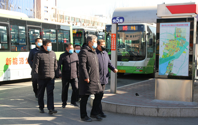 1月8日上午,副市長王世昆、副秘書長宋鴻杰等領導一行到火車站公交樞紐站檢查指導疫情防控工作。市交通運輸局局長張峰,市公交總公司總經(jīng)理張雙義及班子陪同。