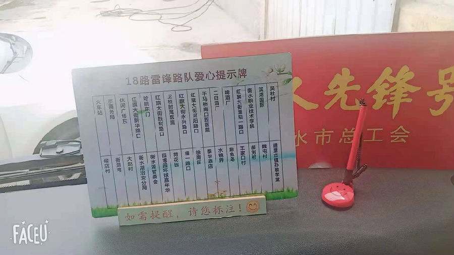 為防止乘客坐過站,他們精心設計了“下車溫馨提示牌”和 “到站提示卡”。為防止乘客雨天上下車摔倒,他們在前后門臺階處放置了“愛心防滑腳墊”。為滿足乘客臨時需求,他們在工作臺上設置了“雷鋒服務包”,里面裝有一次性口杯、針線包、暈車藥、塑料袋和創可貼等便民物品。夏天為乘客準備了便民小扇子,冬天為老弱病殘孕等特殊群體配備了棉坐墊。車廂內還備有便民雨傘、一次性雨衣、應急口罩等物品。為提升車廂文化,他們還放置了一個閱讀書架,上面擺放著他們自制的“衡水公交18路風采”等書畫資料。
