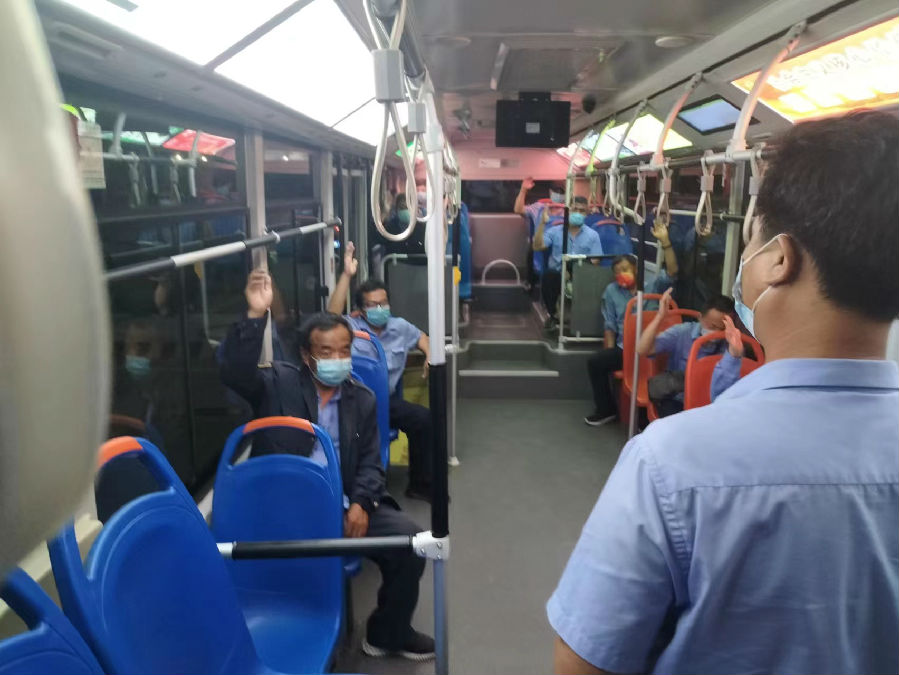 “自2020年新冠病毒漫延全國。在總公司正確領導下,制定并實施一系列防控措施,場站24小時封閉管理,進出場人員戴口罩、測溫、驗雙碼;23路一直以來認真執行各項防疫措施,乘客上車戴口罩、測溫、驗雙碼、掃一車一碼,車輛一趟一消毒、通風,為市民安全出行保駕護航。