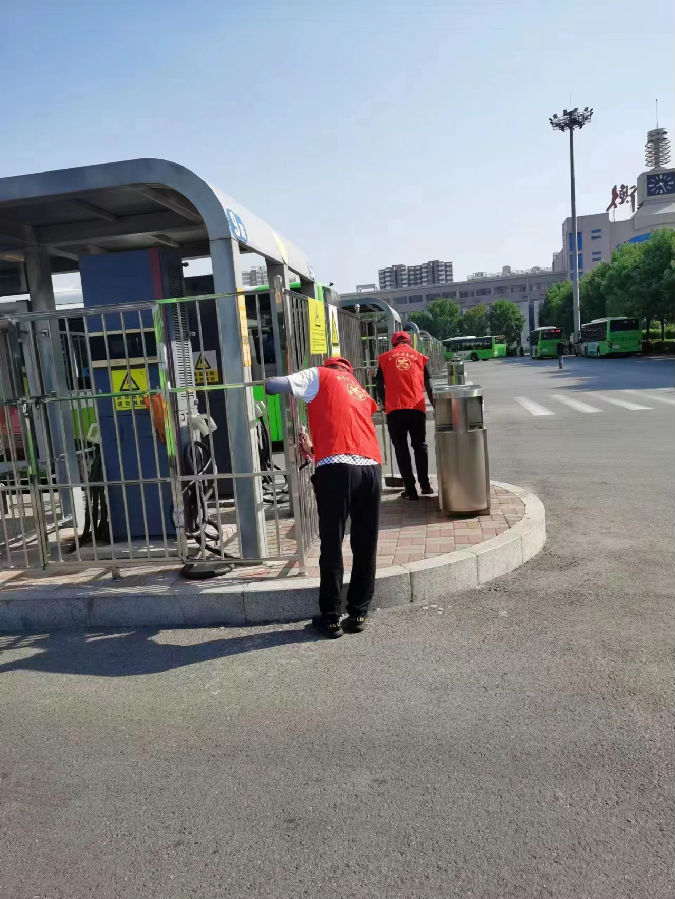 志愿者在車站開展清掃垃圾、撿拾煙頭、擦洗場站圍欄等活動,進一步提升城市文明窗口形象