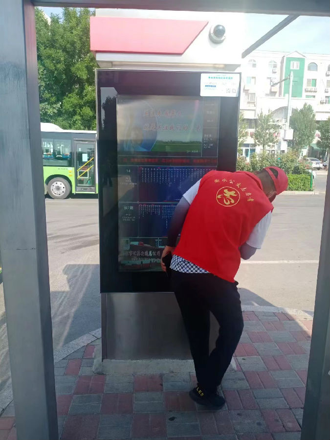 志愿者擦洗重要公交樞紐站站亭,進一步提升公交候乘環境。