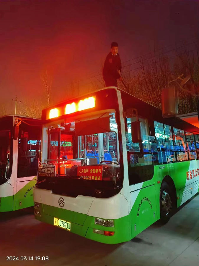 加強公交站亭巡查維護及公交車輛保潔力度,及時發現并維護站亭設施、清理小廣告等問題;運營中“半趟一巡視,一趟一清理”,保持公交車輛內、外環境整潔。為乘客提供舒適整潔的候車、乘車環境。