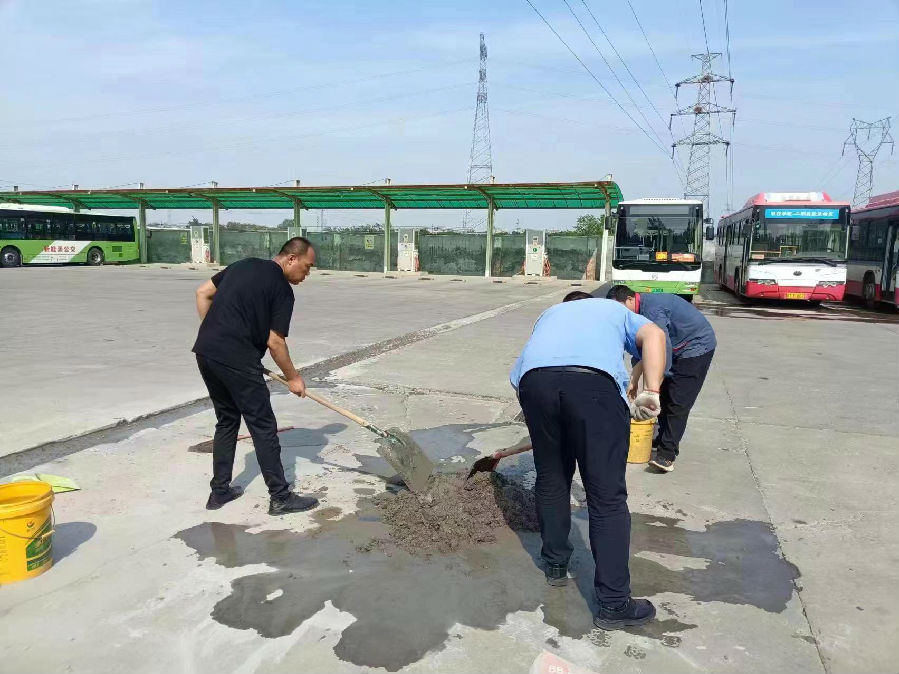 公交場站安全隱患再消除。堅決執行停車場禁煙管理制度,重點對維修車間、值班室、庫房及配電室、充電樁等重點區域進行了楊柳絮大清除;對充電樁進行了維護保養;加強安全充電監管力度,做到人走斷電。此外,對車場地面及樓道口門臺進行維修,抓好安全生產,消除安全隱患,保障車輛正常進出場站。