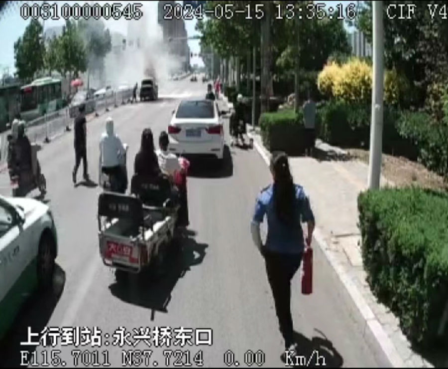 5月15日下午13時32分,31路車長李月瑩駕駛公交車行駛到永興橋東口時,突然看到路邊一輛小汽車冒出濃煙并有火苗竄出,危急時刻,李月瑩立即將公交車停到安全地帶,抄起隨車配備的滅火器,沖向起火地點。由于火勢較大,李月瑩將滅火器用完之后仍有明火不斷竄出,火情未得到有效控制。恰好此時,30路車長趙紅霞和31路車長史立英駕駛公交車行至此地,看到這一情況,他們果斷靠邊停車,拿起滅火器迅速與李月瑩一起參與滅火,三位公交車長不懼危險勇敢撲救,待消防員趕到,三人才放心離開,轉身回到公交車上繼續投入到營運工作中,他們用實際行動贏得了眾多市民和車內乘客的紛紛贊揚。